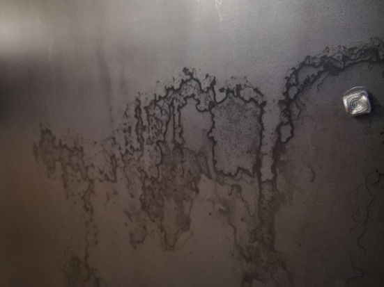 Stahlbleche werden in der Produktion unter Hitze mit riesigen Walzen geformt und bekommen dadurch eine sehr schöne Oberfläche, die, bei genauerem Betrachten, in sanften Wellen von Blau- und Grautönen bis ins Schwarze gehen. Es verhält sich ähnlich wie beim Holz. Geölt kommt es erst richtig zur Geltung.